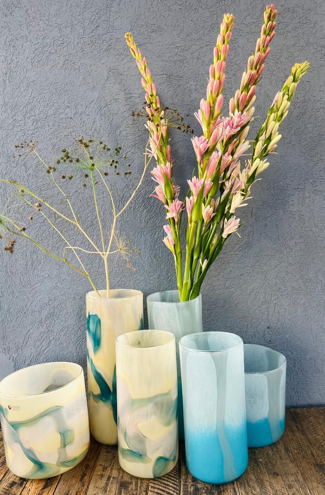 אגרטל זכוכית בגווני תכלת במספרר גדלים